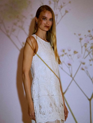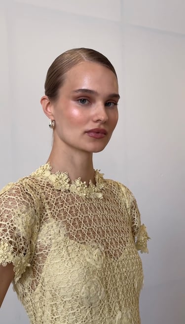 A day in the studio with a team I always love creating with. This time, we explored a clean beauty concept—minimal, luminous, and effortlessly fresh. Set against a pure backdrop, we introduced delicate floral slides, letting the model pose through layers of soft textures and light. The result felt unique and alive.